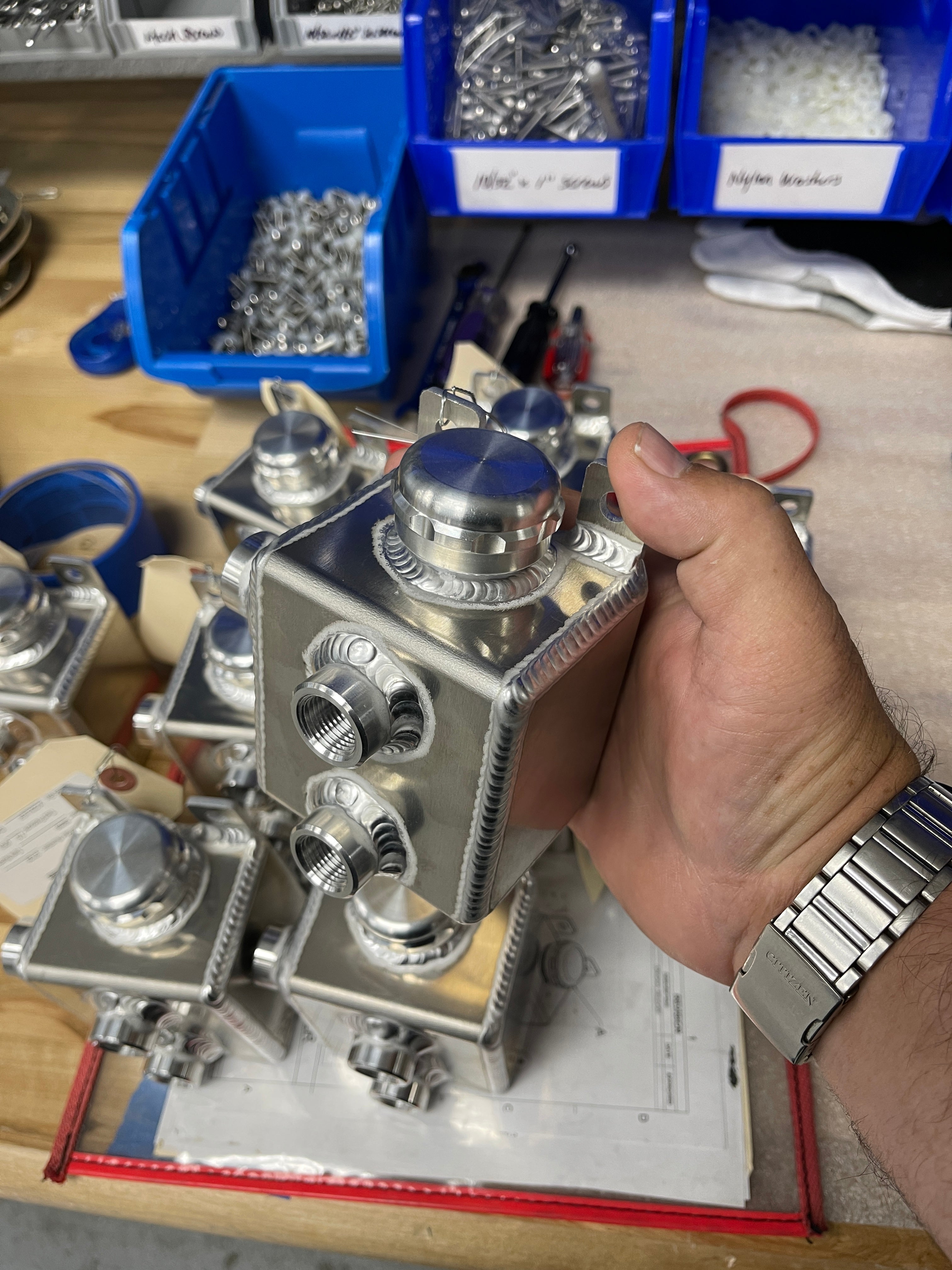 Coolant Tanks can be built to pretty much any dimension with integrated mounting tabs, custom fittings, fills, dipsticks or pressure ratings are all possible.