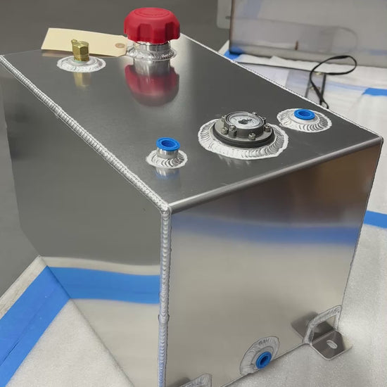 Constructed from 1/8" thick 5052 mill aluminum, this 11-gallon tank measures 18" long, 12" wide, and 12" high, with a 21" x 12" footprint and overall height of 14" including the fill cap. It includes one 3/8" NPT pickup tube standard, with the option to add more for tailored fuel delivery. Venting is provided via a 1/2" NPT port, and 3/8" NPT fittings are incorporated for draw, return, and drain functions. A sending unit flange is included, and four mounting tabs (1.5" x 2" long) ensure secure installation. Threaded fittings, plugs, and hardware are required separately to complete the setup.