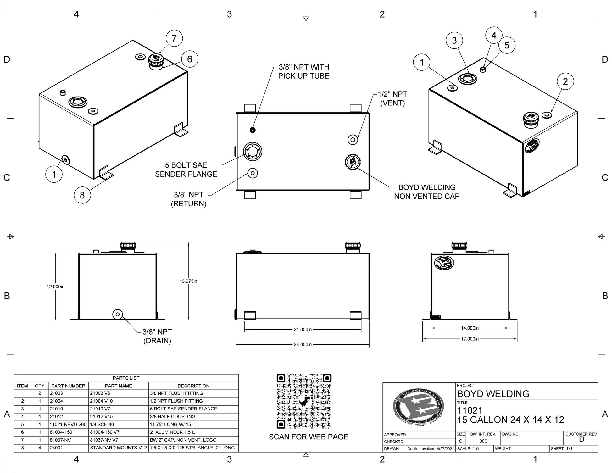 I bought a tank to replace a leaky seam. Boyd is an excellent source. Well run business, good correspondence, timely shipping. The tank arrived carefully packaged. Great workmanship.