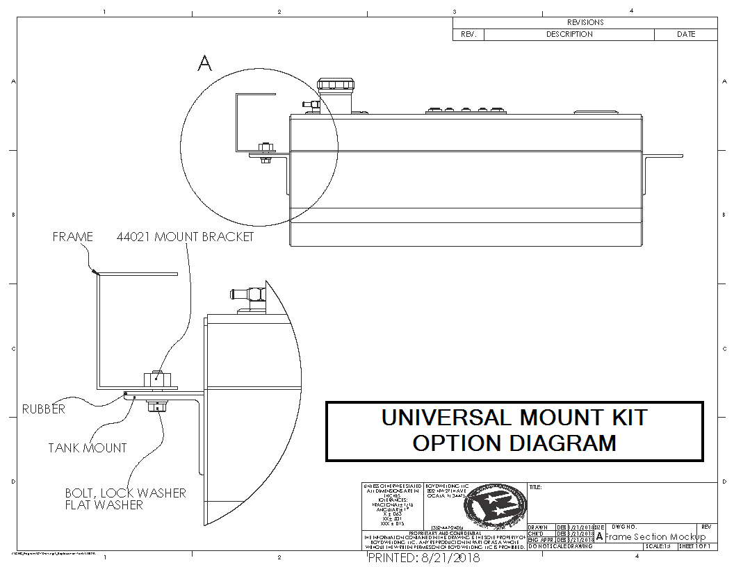 *Our Side fill tank does not require any notching or modification to the frame or bed floor when mounted to the bottom of the frame as intended.