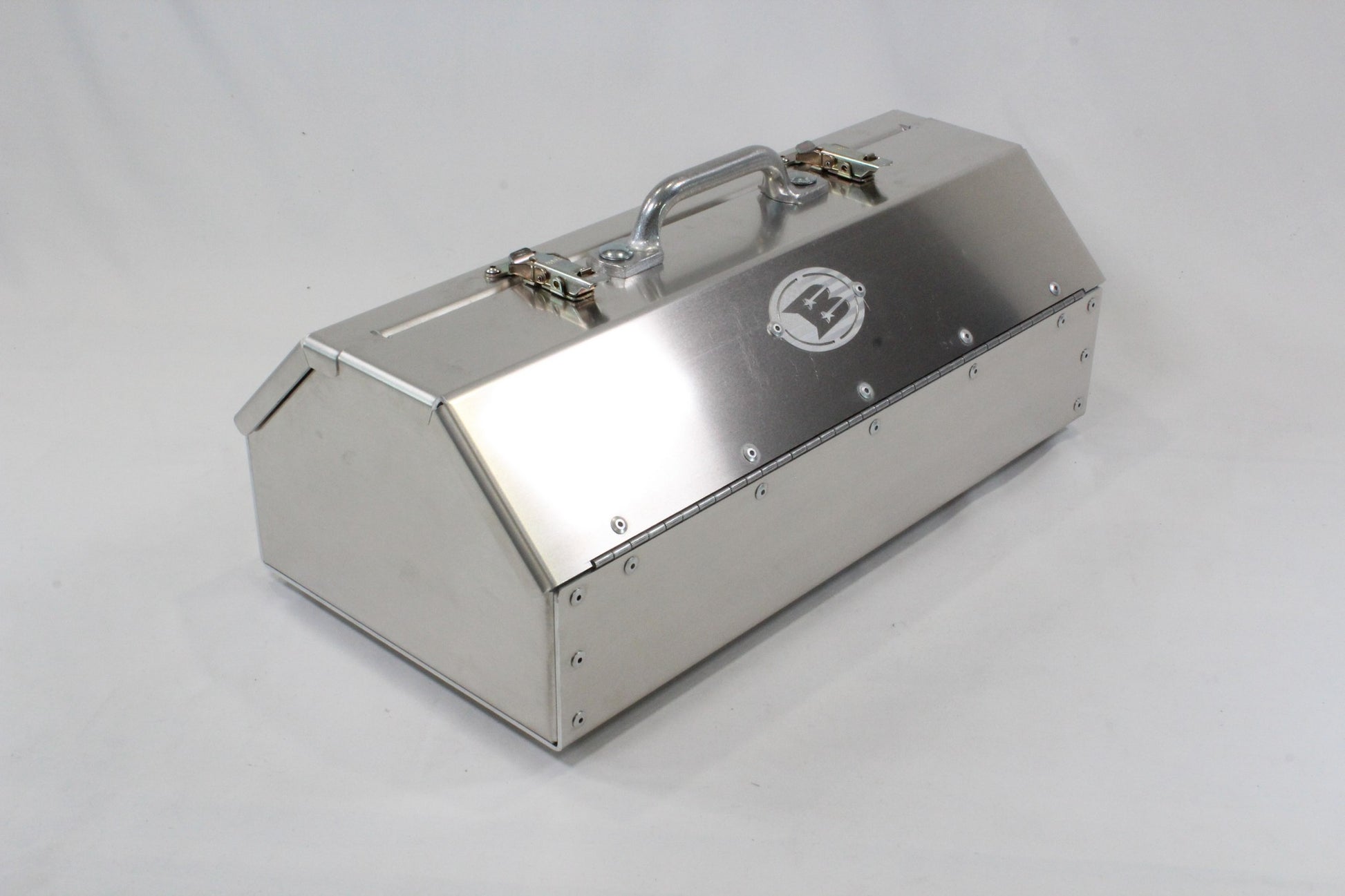The Boyd 26 Series Flop Top Hand Carry Aluminum Tool Box measures 20.25" long, 10.25" wide, and 7.125" tall, with a total height of 9" including the handle. Constructed from .125" 5052 aluminum, it features stainless steel hinges, plated steel latches, and aluminum pop rivets for durable assembly. Please note, the lid lacks a weather seal, so this box is not waterproof. It is ideally suited for securely transporting heavy tools, chains, or straps and is best stored inside a weather-tight container.