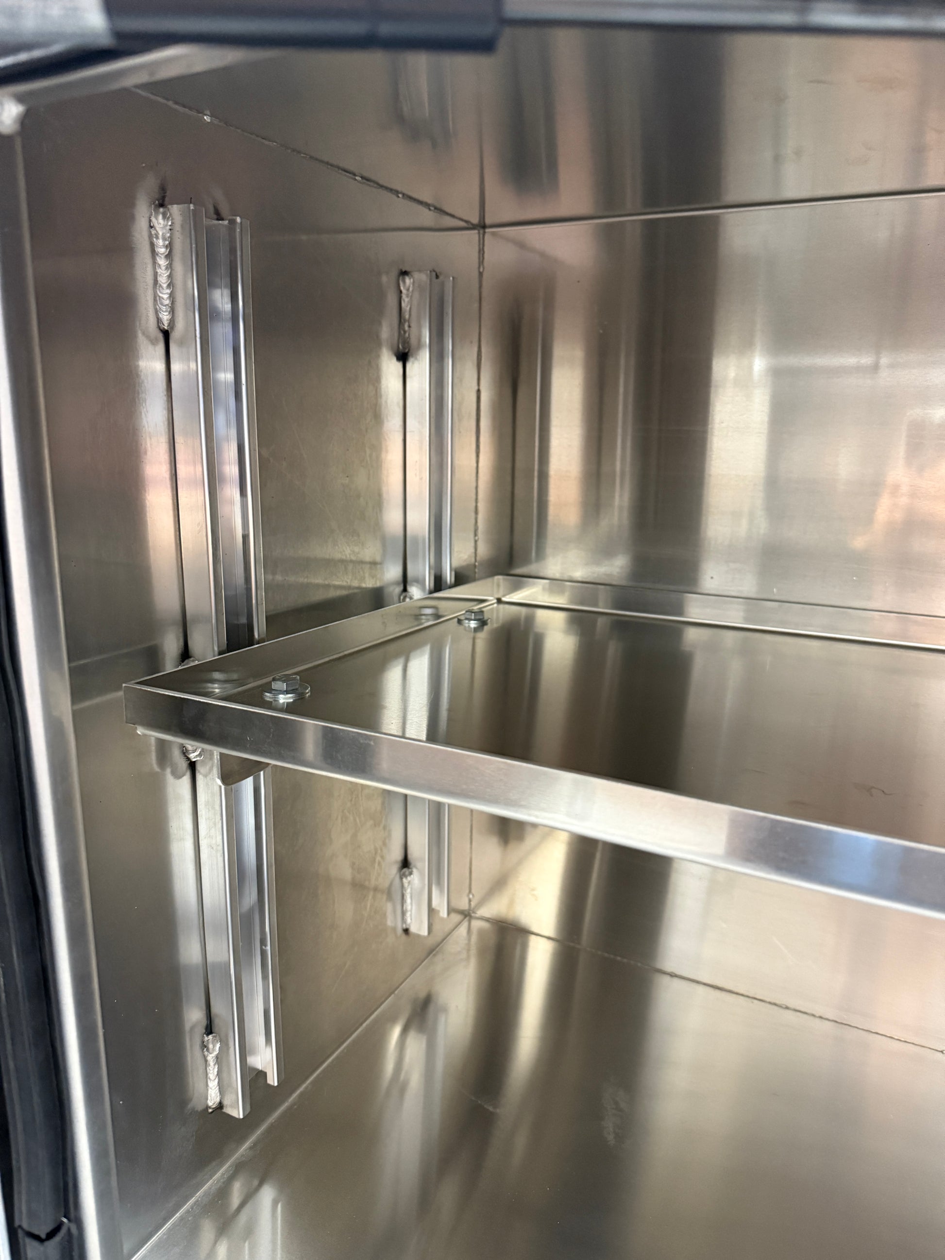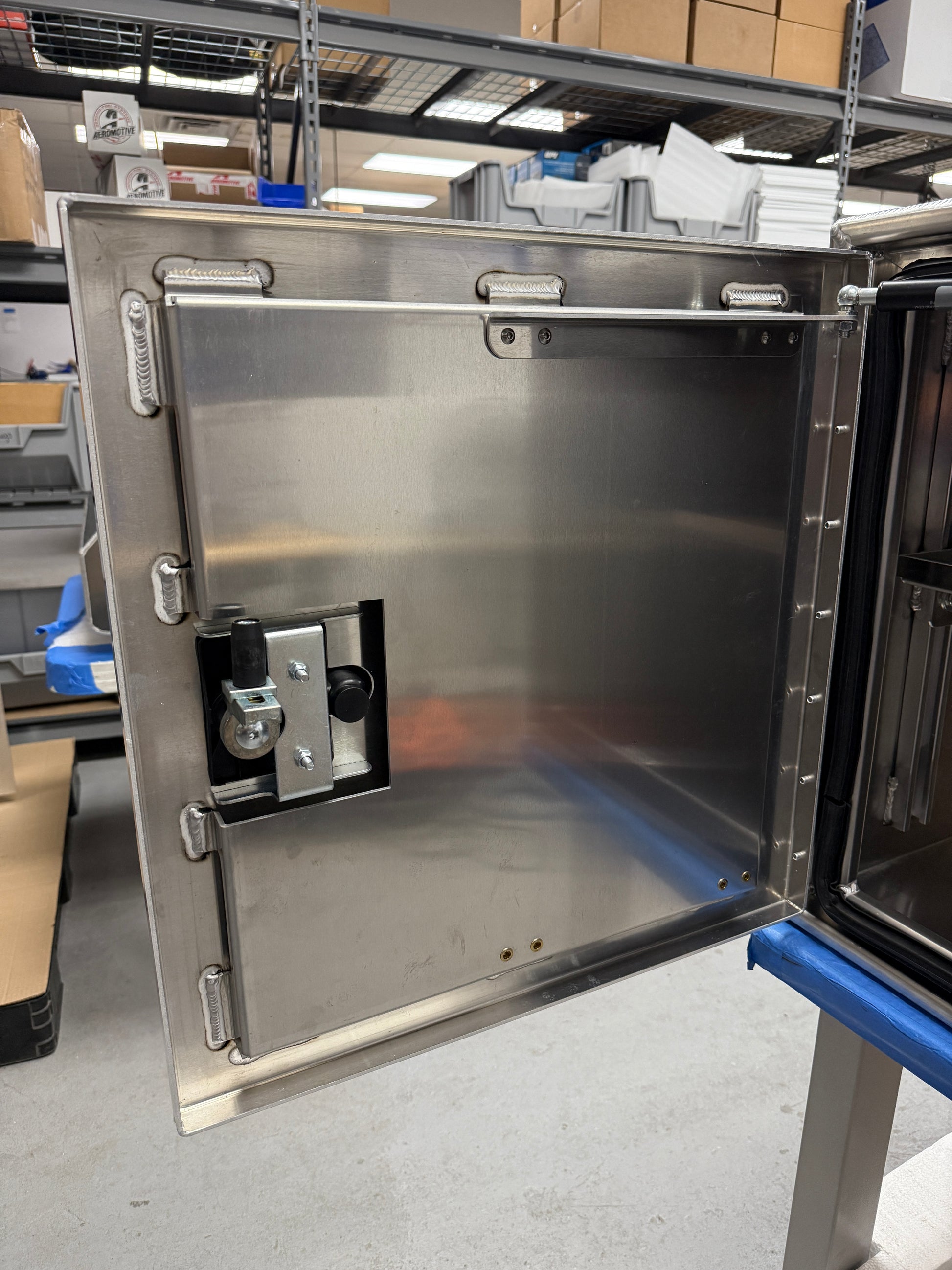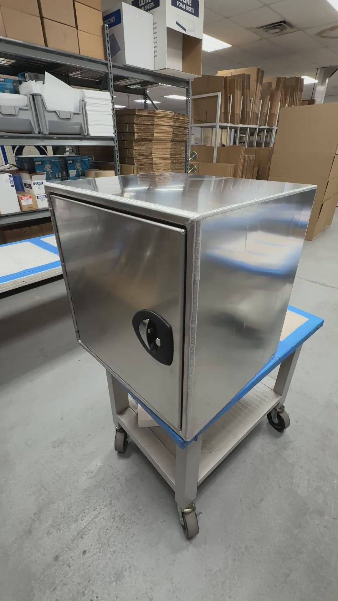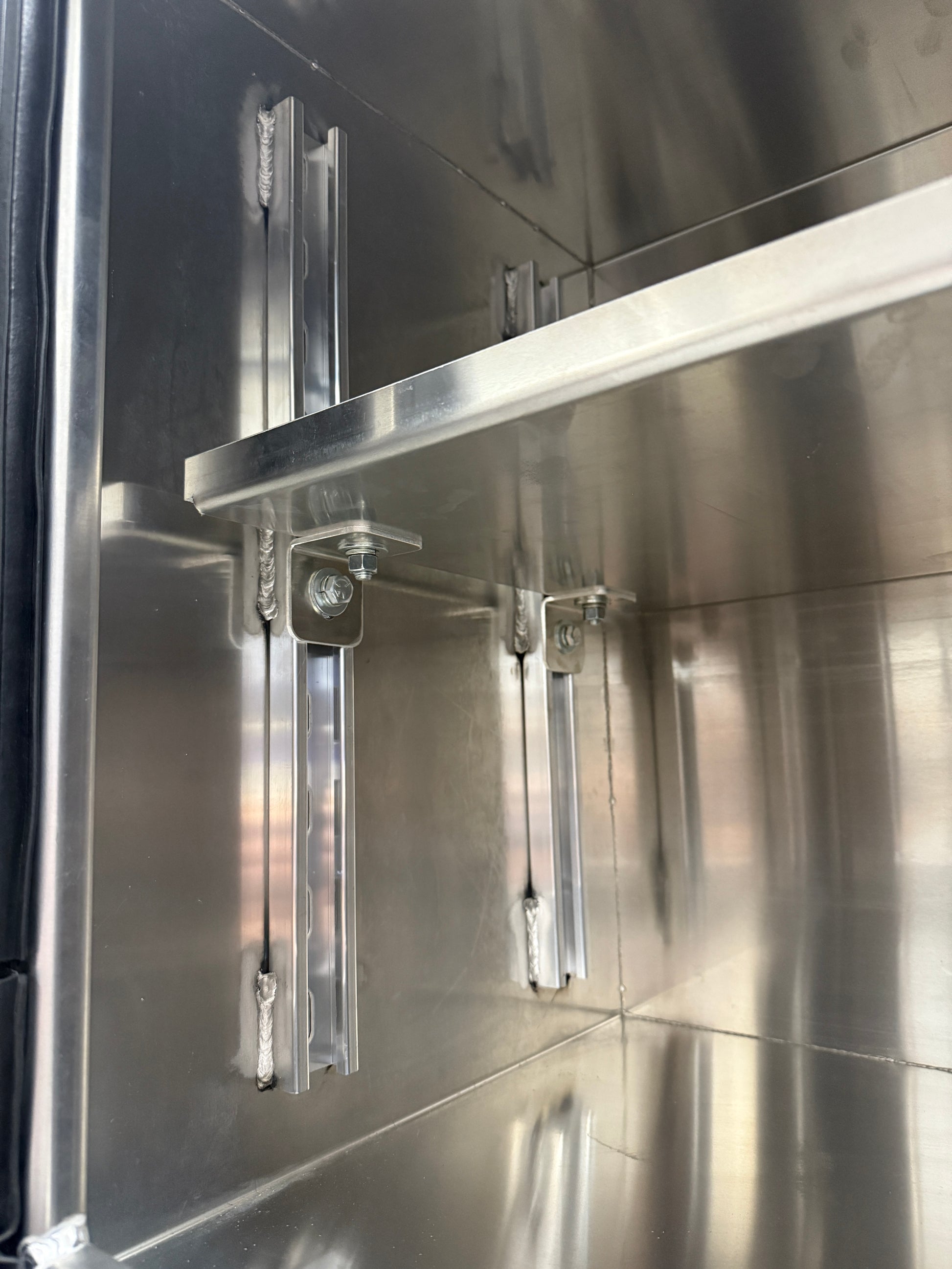 The Boyd 2920 Series 24 x 20 x 24 Aluminum Truck Box Cabinet is constructed from fully welded .125-inch 5052 aluminum, delivering exceptional strength and durability. It features an automotive-style bulb seal gasket recessed within a formed gutter-style door jamb, ensuring a secure, weather-resistant seal. The cabinet includes an adjustable shelf for flexible storage options and an over-center gas shock that allows the door to close automatically when pushed and remain securely latched. Additionally, Boyd tool box doors are fully reinforced, sit flush with the cabinet face, and provide a true 90-degree opening even when mounted adjacent to a wall or another box.